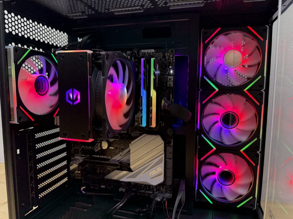Chlazení procesoru obstarává moderní Endorfy FERA 5 ARGB, který se vyznačuje tichým provozem, vysokou účinností a elegantním RGB podsvícením. Celá sestava je umístěna do kompaktní skříně Raijintek ATREUS, která nabízí dobré proudění vzduchu a čistý, minimalistický design.